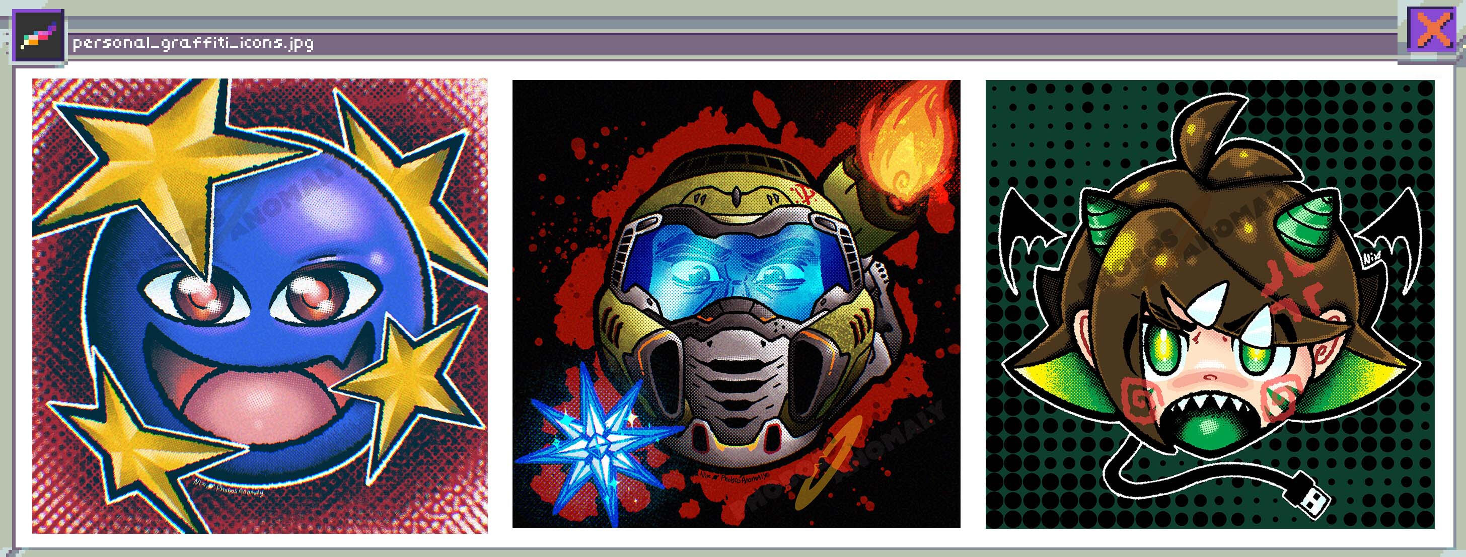 Graffiti-style illustrations are an experimental style - they rely heavily on loose shading, textures, and halftones/screentones, and are drawn with a thick and grungy pen. Recommended for simpler characters with distinct silhouettes.Currently only offering these as headshot icons - works best as a front-facing symmetrical illustration, but am open to other angles, expressions and poses!This commission will work like a Skeb or a "surprise me" comm - just give me your subject and prompts and let me do the rest!Estimated completion date: 1~ week